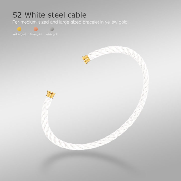 S1 Silver gray steel cable, S2 White steel cable, S3 Black steel cable, S4 Yellow gold steel cable, S5 Rose gold steel cable, S6 Green steel cable, S7 Rose gold and red Emblem steel cable, N1 Light gray cable, N2 White cable, N3 Black cable, N4 Neon orange cable, N5 Neon Pink cable, N6 Light blue cable, N7 Red cable, N8 Garnet cable, N9 Navy blue cable, N10 Turquoise cable, N11 Blue white red and black Emblem cable |